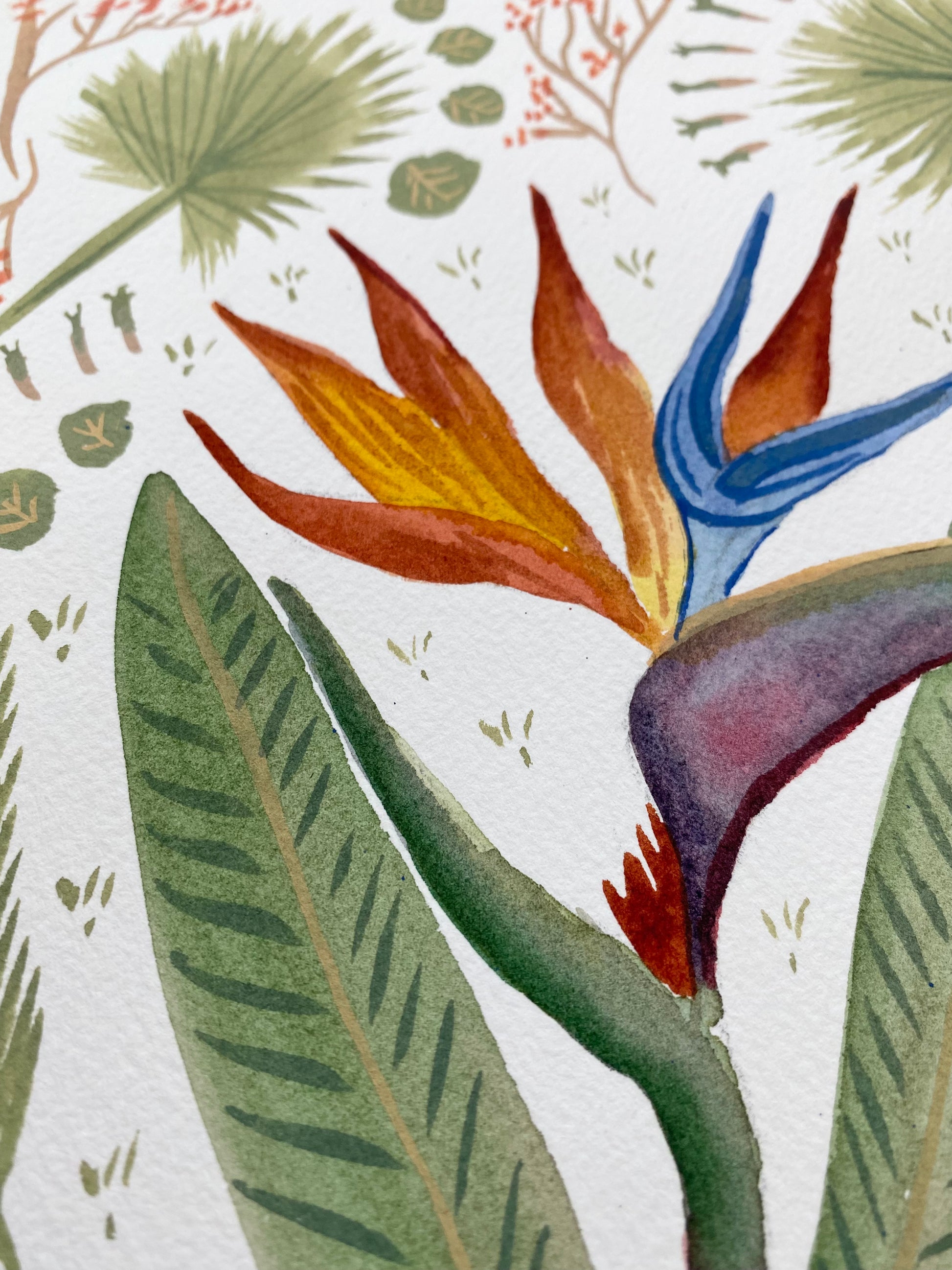 This Bird of Paradise motif is the perfect addition for the coastal tastemaker who loves a little island whimsy.