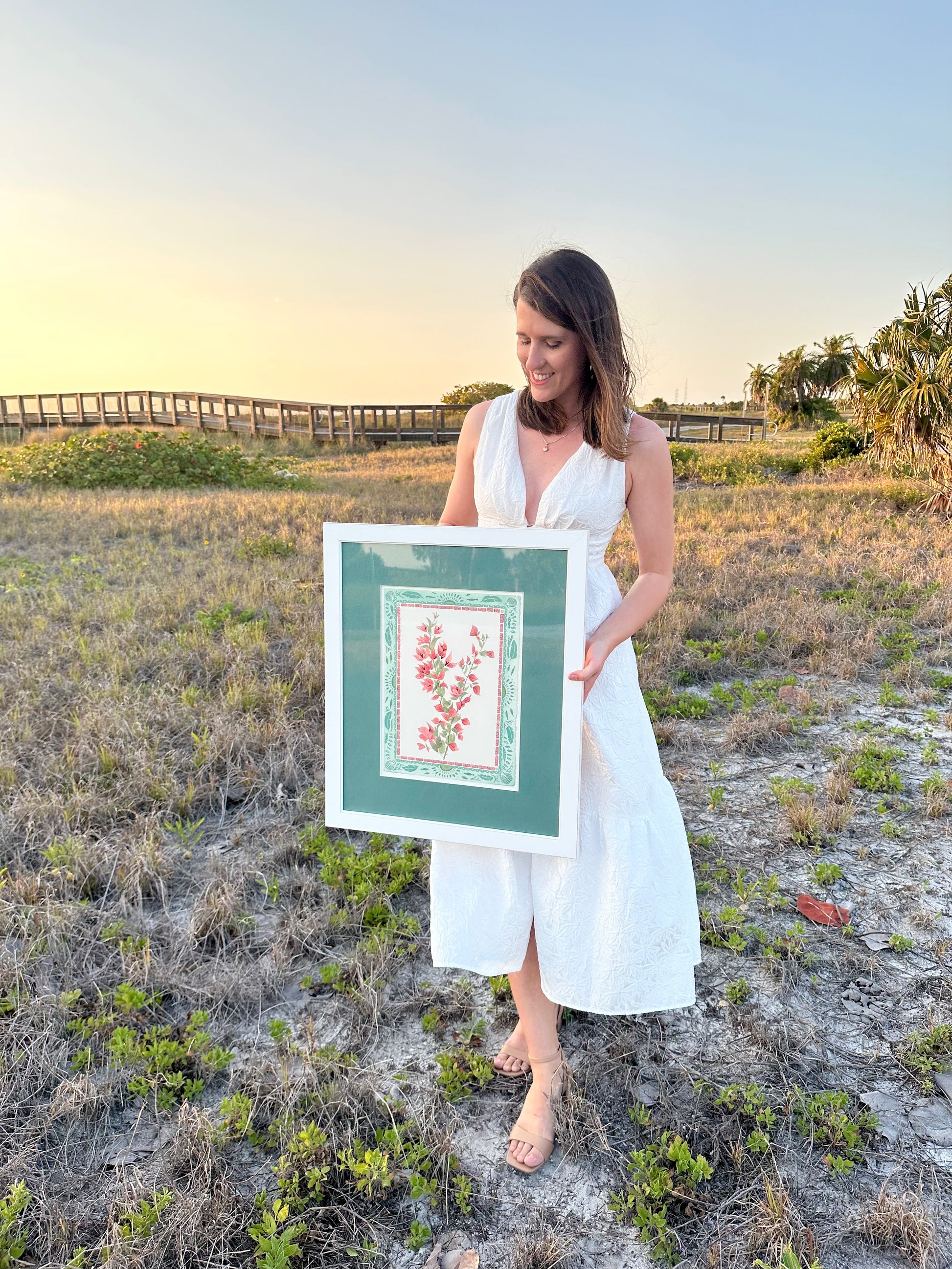 - Original painting is watercolor and gouache, painted on 300 lb. cold press Arches watercolor paper, 11" x 15" painted to deckled edge. Framed by Smith Bros. Framing in South Tampa, Fla. Framed artwork measures 21” x 25”.