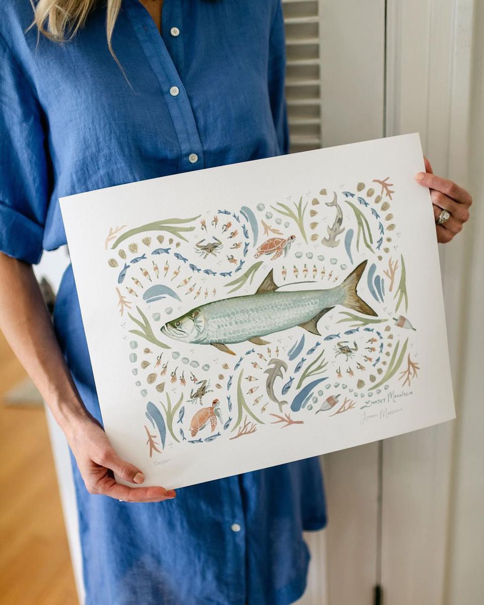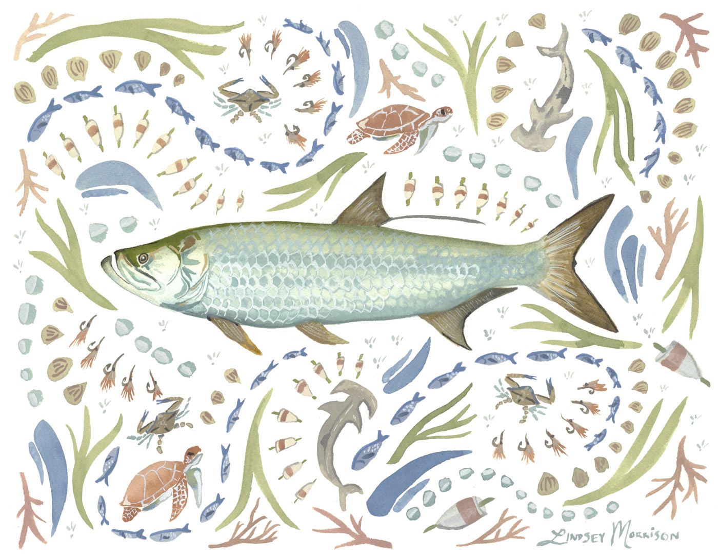 For those of us for love and respect tarpon, the pursuit of the Silver King is the ultimate fishing experience. Waking up before the sun to cruise along the shoreline, scanning the calm waters for the tell-tale signs of tarpon rolling. Then the anticipation as you wait for the feeling of a 100+ lb archaic fish picking your prized bait. The extreme thrill begins as you test your wits and strength against the Silver King before safely releasing it back to the sea. If you know this feeling, then this one-of-a-kind watercolor painting will show off your love of the hunt for the Silver King.
